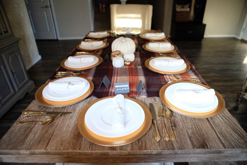 I hope you all had a wonderful Thanksgiving! We hosted Court’s parents, our friend Courtney, my Mom, my sister, and her boyfriend for the holiday. I took a few pictures of our setup prior to everyone arriving: